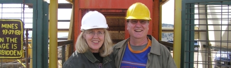 Mike and I were smiling after our near-panicky elevator ride on the Mollie Kathleen Gold Mine tour (taken July 2011 in Cripple Creek, Colorado). If you’re claustrophobic, don’t take the tour. It was a cram-as-many-students-in-a-phonebooth-50s-style experience. Add total darkness and a descent of 100 stories and you get the picture.