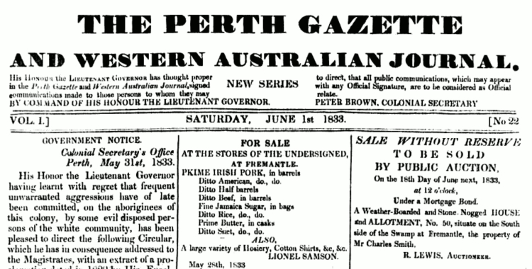 Source: The image of the Perth Gazette is in the public domain.