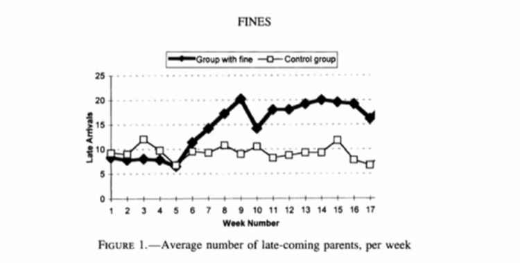 - The chart from Clay Shirky’s talk illustrates behavioral change in parents using a day care after a late-pick-up fee was imposed. If you think you can guess what happened, find out what did happen and what Clay concludes from this behavioral study.