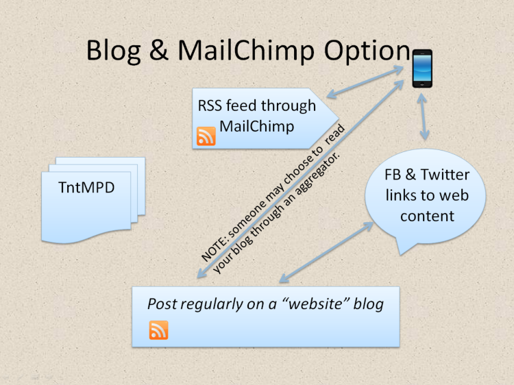 [ASIDE: When I mention “RSS” and “feed” that means technology can identify a new blog post and send that content to the reader, who no longer has to go visit a site for the latest news. Your Facebook “Home” page is set up as a feed.]