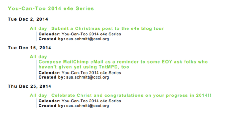 The sample image below is a spreadsheet I used to import over thirty blog post descriptions for the You-Can-Too series for January through December 2014. I used the spreadsheet strictly for importing, so it didn’t have to be attractive and presentable.