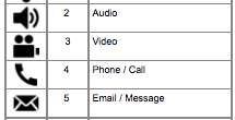 Many digital icons are skeuomorphs of real-world tools, but some of these tools may no longer be familiar. When was the last time you saw an actual movie camera with the two reels on top? Have you seen a more modern icon for recording video? Often, the triangular “play” button is enough. I’ve noticed the phone icon in this sample has been replaced on many sites by a drawing of a smartphone.