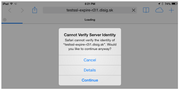 Here’s what that warning looks like in Safari on an iPad: