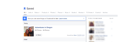 Did you know you can save links, videos, places, events and more in Facebook? You’re the only one who sees the things you’re saving.
