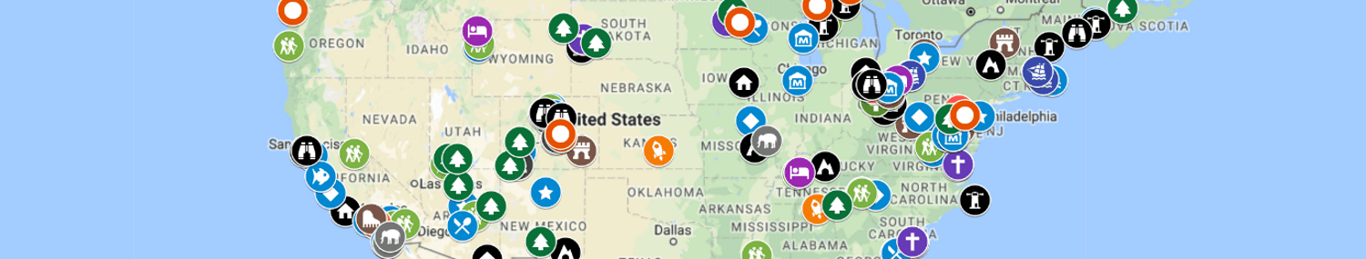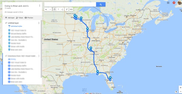 These maps can be private or shared with specific people. I put together a map to share with you. I call it “In-between” Places for Long Road Trips. (If you get an error message, try a different browser or try clearing the cookies from your browser.)