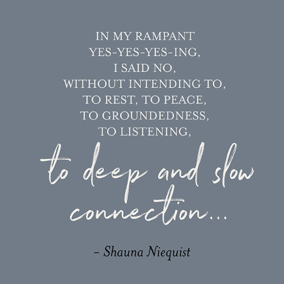 Shauna Niequist writes…”You can’t have yes without no. Another way to say it: if you’re not careful with your yeses, you start to say no to some very important things without even realizing it.“