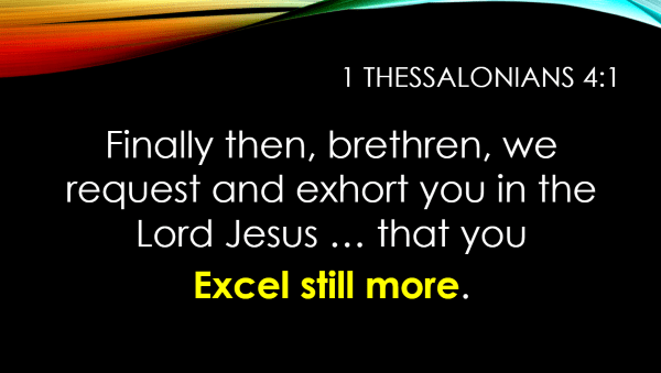As Bob likes to quote: “Finally then, brethren, we request and exhort you in the Lord Jesus … that you Excel still more.” (1 Thessalonians 4:1) Why not set aside time to learn some time-saving tricks and “Excel still more?”