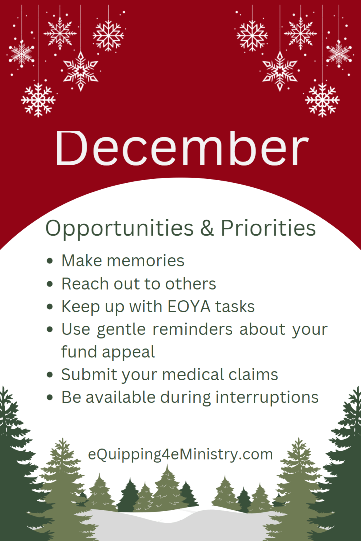 I hesitated to call this post “Deadlines” because that may be a big negative for you. I want you to think more about YOUR opportunities and priorities. You’ll prayerfully choose these and let the rest go.